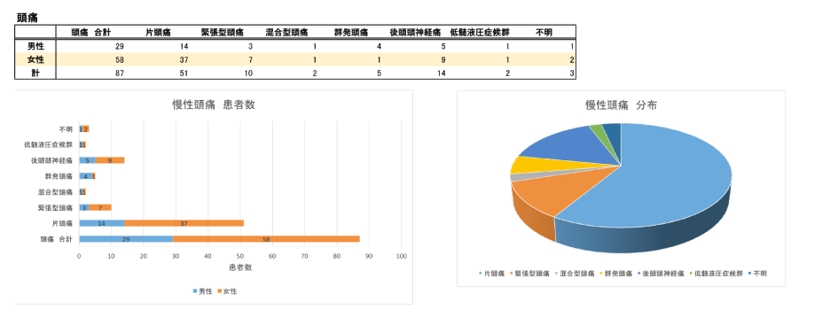 当院は脳神経内科という専門性から、慢性頭痛、認知症、神経変性疾患の診療に力をいれています。昨年( 2014年1月1日 ~ 同12月31日 )診療させて頂いた疾患の分布(すべて成人)は下記のようになりました。